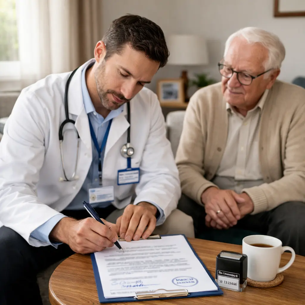 Evaluación en Tiempo Real: El médico puede certificar la lucidez minutos antes o el mismo día en que el notario acude al domicilio para la firma.